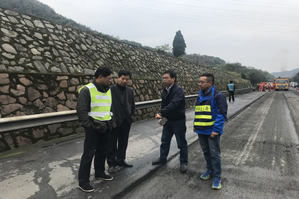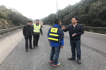 12月1日上午,市公路局副局長童桂正,養護科科長胡川林到路面專項施工現場指導工作。