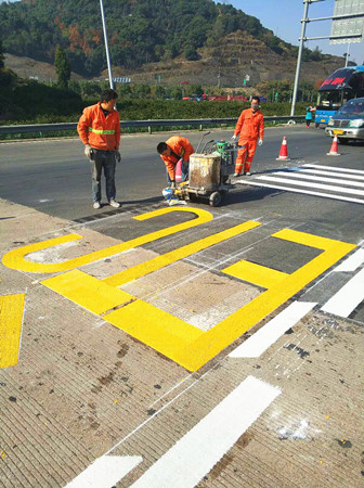 圖為工作人員繪制新的ETC標線