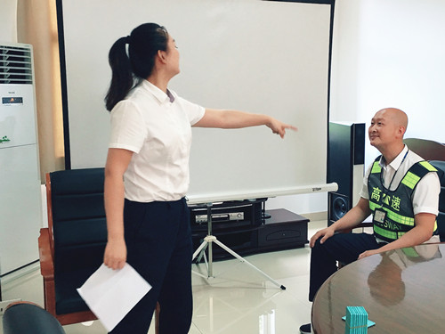 此次培訓(xùn)一改枯燥乏味的傳統(tǒng)形式,工作人員結(jié)合平時(shí)窗口實(shí)際工作,分別擔(dān)任角色扮演,生動(dòng)而又形象地演繹窗口服務(wù),真實(shí)地反映出收費(fèi)員在收費(fèi)過(guò)程中遇到的各類(lèi)情景。比如:ETC車(chē)道無(wú)法正常通過(guò)、遇堵車(chē)分流、駕駛員情緒激動(dòng)、綠農(nóng)車(chē)混裝未達(dá)到免費(fèi)、入口如何勸離超限車(chē)輛等各類(lèi)突發(fā)事件應(yīng)急處理辦法。