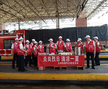 圖為志愿者合影 志愿者們兵分三路,一路在外廣場對滯留車輛進行文明勸導,一路拿著垃圾袋和撿拾工具沿收費區域收集垃圾,另一路則在安全島上向過往的司乘人員宣傳夏日行車安全知識,同時提供礦泉水、冰鎮綠豆湯,發放清涼油、風油精等防暑降溫用品,不僅為司乘人員提供熱情周到的服務,還讓過往司乘人員在炎炎夏日真切感受到一絲清涼和一份關心。 該所通過開展一系列的志愿活動,促進了收費員與司乘人員之間的溝通交流,拉近了彼此之間的距離,贏得了過往司乘人員的好評,塑造了良好的窗口形象,為臺州市創建全國文明城市貢獻力量。 鄭瑛芝