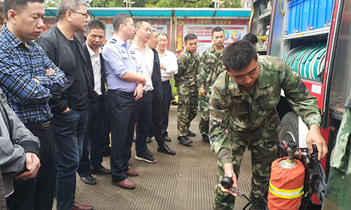 圖為培訓現場 活動現場,黃巖消防大隊官兵向參加活動的員工展示消防車上的消防裝備實物,講解裝備使用功能以及消防車基本構造,耐心地解答員工提出的問題,并當場進行專業的消防水帶連接滅火演示。之后,臺州收費所員工開展消防水帶連接滅火演練,獲得黃巖消防大隊官兵的肯定,同時針對演練中存在的問題及不足給出專業性的指導意見。
