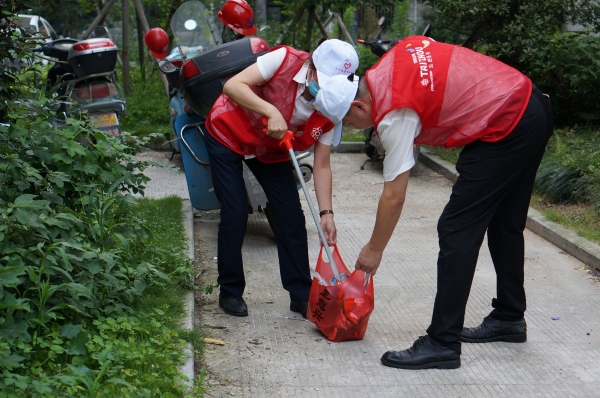 下午2時,該所一行6人在所長王小勇的帶領下抵達九峰社區(qū),在社區(qū)負責人的介紹中了解了社區(qū)的基本情況,并開展環(huán)境衛(wèi)生清理工作。志愿者們身著志愿紅背心,一手拿垃圾夾一手提垃圾袋,在社區(qū)道路、綠化帶里認真撿拾垃圾和煙頭。社區(qū)工作人員與志愿者們親切攀談,天氣雖然悶熱,但大家的熱情絲毫不減。活動結(jié)束時,雙方探討了結(jié)對共建聯(lián)絡機制,以確保共建活動常態(tài)化開展。