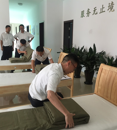 圖為疊被子比賽現場