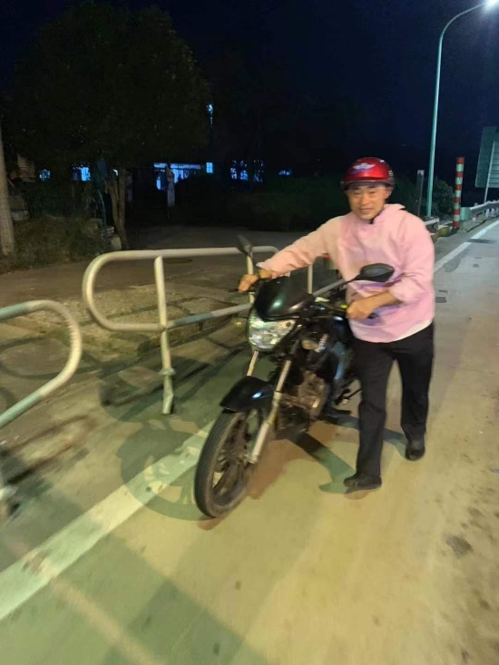 圖為誤入高速的人員 經(jīng)了解,車上坐的是在臺州打工的兩兄弟,中秋節(jié)廠里放假,突然想起回老家江蘇過節(jié),由于路況不熟,按導(dǎo)航提示,稀里糊涂就上了高速。上來后,發(fā)現(xiàn)路上車子既多又快,越開感覺心里越是怕怕的,大晚上的也不知道該怎么走,看到有口子就急著下了。 得知情況的周冬子先對兩兄弟普及高速公路禁止摩托車行駛的交通法規(guī)知識,隨后根據(jù)實際情況給他們推薦了一條相對便捷的國道路線,并建議他們節(jié)假日路上車輛較往常要多,為了安全起見,最好選擇白天出行或者坐動車。 兄弟倆表示今后不會再犯這樣的錯誤,對該班長的熱心幫助再三感謝。 周冬子