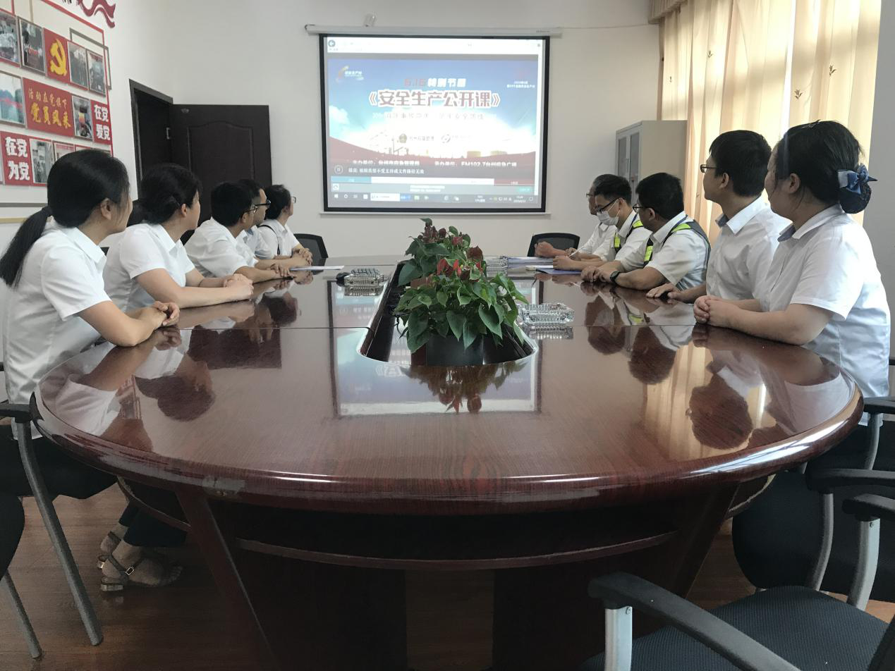 圖為集中觀看安全視頻 該所組織收費所員工積極參與市級安全隱患有獎隨手拍網絡活動;集中組織收看《臺州市公共安全教育館安全體驗線上直播活動暨安全生產公開課》;充分發揮廣大員工參與安全生產的積極性,為公司安全發展集思廣益、建言獻策,開展“查安全隱患、提合理化建議”活動;組織收費所員工參與以全國“安全生產月”官網平臺開展的知識競賽答題活動,學習安全法律法規,普及安全常識,提高員工安全生產意識和能力;在管理所張貼宣傳畫、懸掛安全宣傳標語橫幅,利用可變情報板滾動播放“安全生產月”活動主題和宣傳標語,發揮宣傳欄、微信平臺作用,大力營造“消除事故隱患,筑牢安全防線”的主題氛圍。