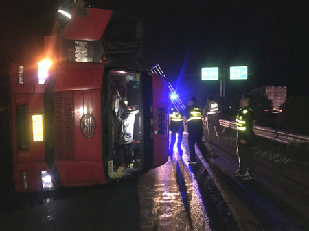 1月19日晚,一輛半掛車在溫嶺西收費站下高速時,因故在內廣場側翻。溫嶺西收費所、施救中心、高速交警、維養中心人員協同作戰,將側翻車輛吊起,有效降低了事故對收費站通行造成的影響。
