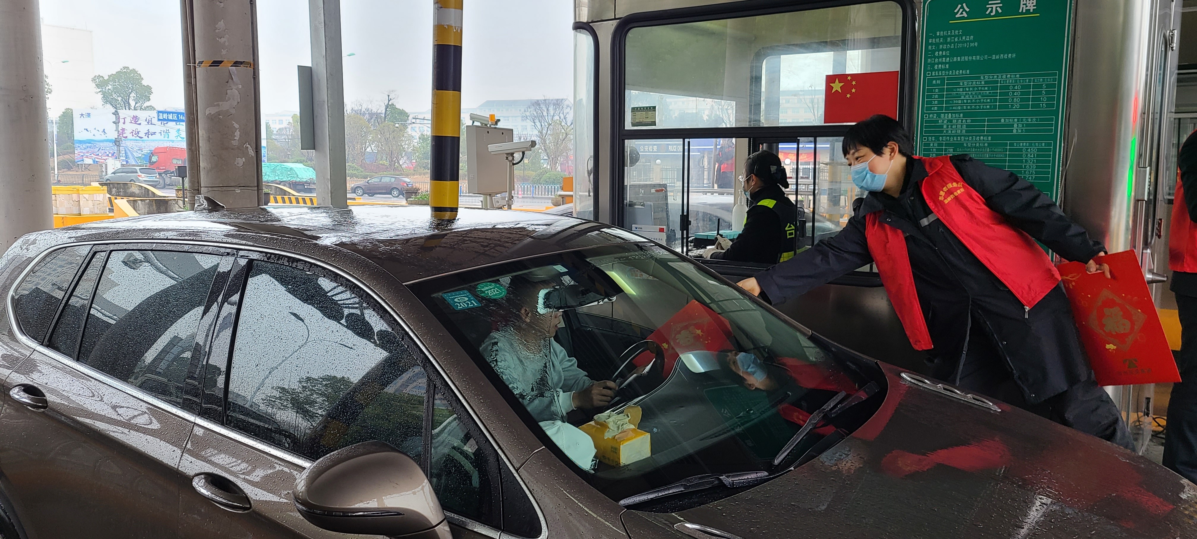 此次活動,收費(fèi)所共準(zhǔn)備了200多份新春對聯(lián)、福字在收費(fèi)窗口及服務(wù)臺發(fā)放。活動現(xiàn)場春意融融,溫馨熱烈,過往的司乘人員對這一舉措紛紛表示歡迎,并為收費(fèi)站工作人員的熱情和微笑服務(wù)所感動,有司機(jī)這樣感嘆“雖然冬天特別冷,但在收費(fèi)站卻感覺到了不一樣的溫暖,不但送東西,笑容也很燦爛”。“一副春聯(lián),一片情”,傾注著臺州高速送給廣大司乘人員新年里一份濃濃的平安與祝福。