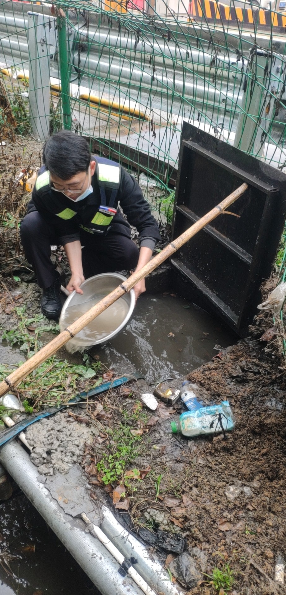 找出原因后,鄭星趕忙跑到所里取來(lái)一個(gè)水盆和一根木桿子。他用木桿支起排水坑上的蓋板,將坑里的積水一盆一盆地舀到旁邊的排水溝里。引導(dǎo)完車輛的林華平也過(guò)來(lái)協(xié)助鄭星。雖然此時(shí)外面下著雨,但他們?nèi)粵](méi)顧上,只盼著舀水這個(gè)措施能夠有效,11號(hào)車道能夠早點(diǎn)恢復(fù)使用,進(jìn)口秩序能夠早點(diǎn)恢復(fù)正常。 最后在鄭星和林華平的冒雨搶修下,排水坑里的水位總算有所下降,11號(hào)車道在關(guān)閉二十多分鐘后終于恢復(fù)使用,進(jìn)口車輛也恢復(fù)暢通。 因地磅傳感器長(zhǎng)期被雨水浸泡,可能還存在一些潛在問(wèn)題。再者,排水坑里的水位雖有所下降,單憑人力實(shí)在無(wú)法在短時(shí)間內(nèi)排掉剩余積水。考慮到這些問(wèn)題,班長(zhǎng)在搶修過(guò)后又將情況匯報(bào)給了維養(yǎng)中心,維修人員后序針對(duì)地磅問(wèn)題進(jìn)一步展開(kāi)排查和維修工作。 趙育辰