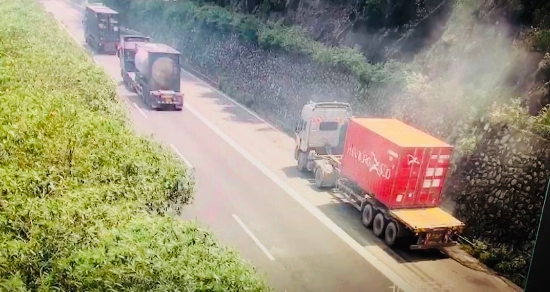 快速出警 將“火”扼殺在萌芽狀態(tài) 7月17日,連日的陰雨總算放晴,中控員如常盯著監(jiān)控大屏,13:18分,黃土嶺隧道溫向北洞口停車帶一輛紅色半掛車極其耀眼,憑借多年的崗位經驗,中控員第一時間切換到主畫面,嚴密監(jiān)視車輛動態(tài)。 “不好,車輛‘著火’了!”短短幾秒鐘的時間,此車右側后方逐漸升起煙霧,越來越濃密。中控員立即通知監(jiān)控中心與執(zhí)勤隊,啟動應急預案。
