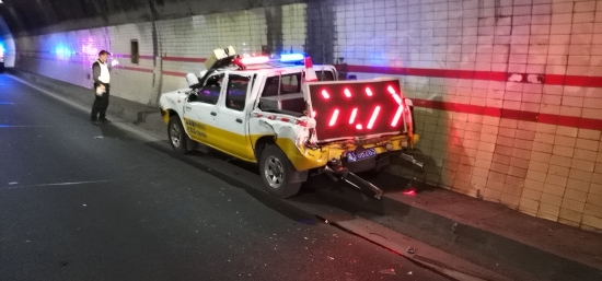 圖為事故車輛 憑著多年積累下來的經(jīng)驗,洪瑞立刻判斷該車肯定存在異常情況,趕緊使用巡邏車內(nèi)的廣播反復呼叫,提醒貨車靠邊停車檢查,并將此情況反饋到中控室。然而貨車并未停下,為了確保貨車的安全,巡邏車開啟警示燈,拉起警報,給該車預警。 當車行駛到馬鬃嶺隧道時,執(zhí)勤隊員從后視鏡發(fā)現(xiàn)后方有另一輛大貨車正快速逼近,沒有任何減速的傾向。這一刻,留給他們的只有兩個選擇:往左拐,時間緊張,一個處置不當,會出現(xiàn)尾部被撞后再次追尾前方貨車的前后夾擊險情,后果不堪設想;或者在被撞時的一瞬間采取正確的應對措施,在操作時絕不能有一丁點的遲疑,逃生的時機僅有幾秒鐘。 生死存亡的緊急關(guān)頭,隊員們及其冷靜,被猛烈撞擊時,沒有急踩剎車、誤打方向,在左側(cè)車道有車的情況下,處置正確、分毫不差,往右車道偏移了10來米,成功從夾縫中逃脫,化解了這次險情。巡邏車被撞后,兩名受傷隊員不顧傷痛,仍然堅持下車保護現(xiàn)場并對來往車輛預警,預防二次事故的發(fā)生,直到后續(xù)救援力量到達。 此次事故造成三車追尾,兩名執(zhí)勤隊員輕微受傷,雖然巡邏車損失慘重,但是因為執(zhí)勤隊員高度的工作責任心和對險情的正確判斷處置,才未造成任何司乘人員的傷亡,也未影響到隧道正常通行。 據(jù)隧道所員工了解,該貨車司機可能是凌晨疲勞駕駛沒有聽見巡邏車預警,在此提醒廣大司機,車輛如果發(fā)生故障,車靠邊、人撤離,即報警,切忌疲勞駕駛! 盧祖理