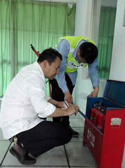 圖為檢查現(xiàn)場(chǎng) 該所副所長(zhǎng)應(yīng)錦清帶領(lǐng)隊(duì)員仔細(xì)檢查了南北配電房的機(jī)電設(shè)施,隨后對(duì)管理房的干粉滅火器、隧道內(nèi)的泡沫滅火器,配電房、中控室的二氧化碳滅火器進(jìn)行逐一檢查,查看每個(gè)滅火器的壓力值、出氣管有無(wú)彎折、堵塞、損傷,壓把和閥體等金屬件有無(wú)變形和銹蝕,是否還在使用年限之內(nèi)等等,并做好相應(yīng)的檢查記錄。 陳智慧