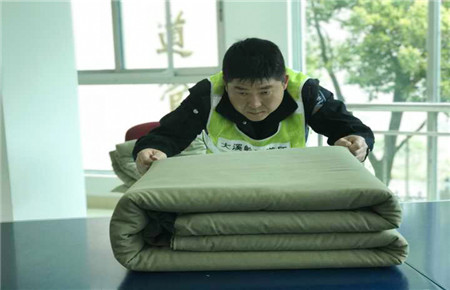 大溪嶺隧道所開展了內(nèi)務(wù)整治疊被競賽。比賽要求是在規(guī)定的5分鐘時間內(nèi)將被子壓平壓實,捏出被子的棱角,疊成形。隨著裁判員的一聲令下,隊員們立馬進(jìn)入狀態(tài),迅速將被子展開,對折,壓平,切槽,起角……一步一步地整理,時間一分一秒地過去,他們鎮(zhèn)定自若,嫻熟地動作,熟練的技巧,將散亂的被子變成方方正正的“豆腐塊”。有些隊員甚至用了二三分鐘就疊好了。內(nèi)務(wù)整治包括疊被都是隧道所正規(guī)化整治的一部分內(nèi)容,長期堅持的良好習(xí)慣讓員工養(yǎng)成了嚴(yán)謹(jǐn)?shù)纳钭黠L(fēng),保持了宿舍內(nèi)務(wù)衛(wèi)生的整齊劃一。