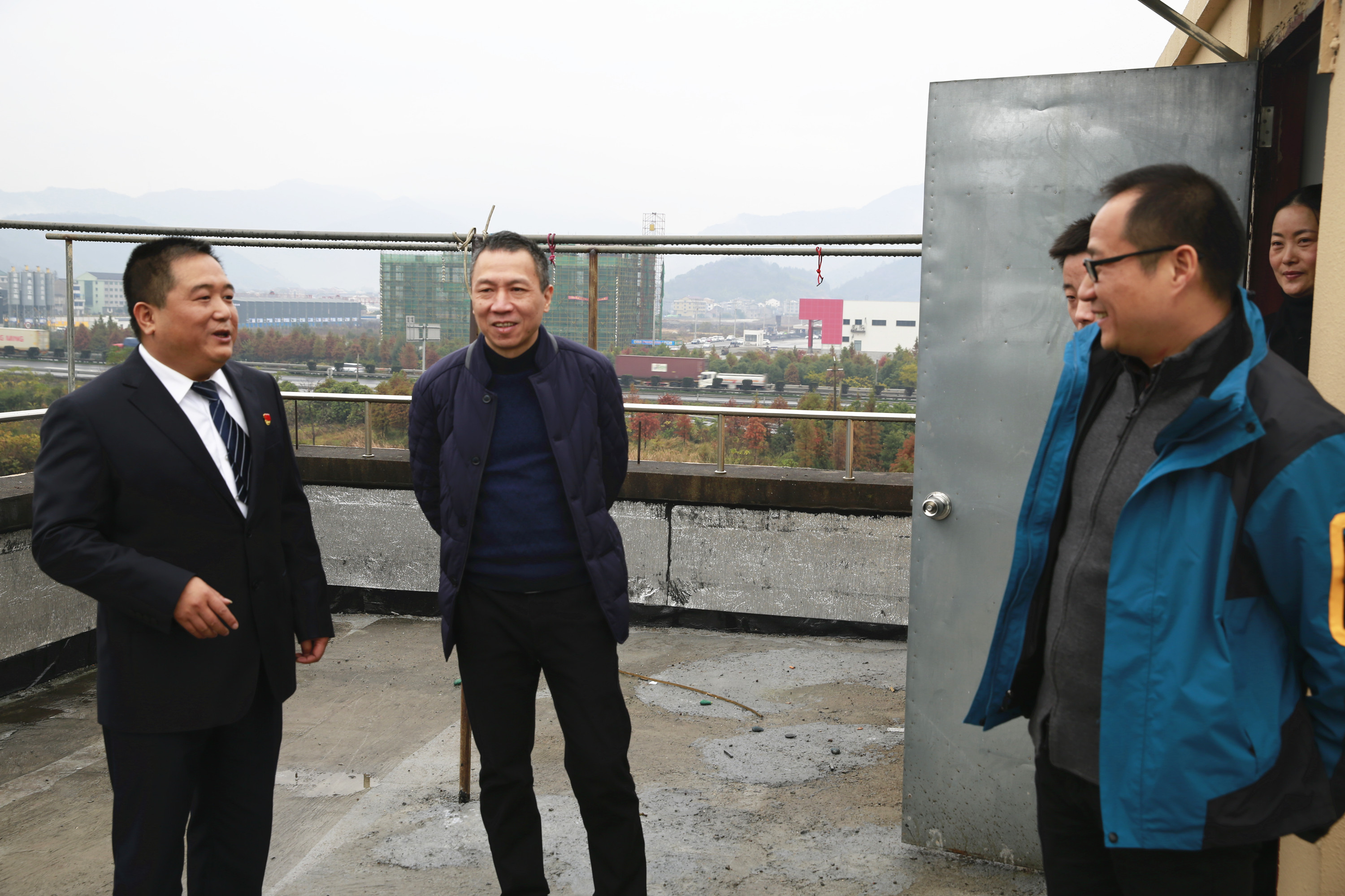 圖為集團(tuán)副董事長、總經(jīng)理張建平檢查臺(tái)州南收費(fèi)所陽光房