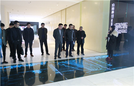 圖為考察團觀看東部新區(qū)墻暮宣傳影片