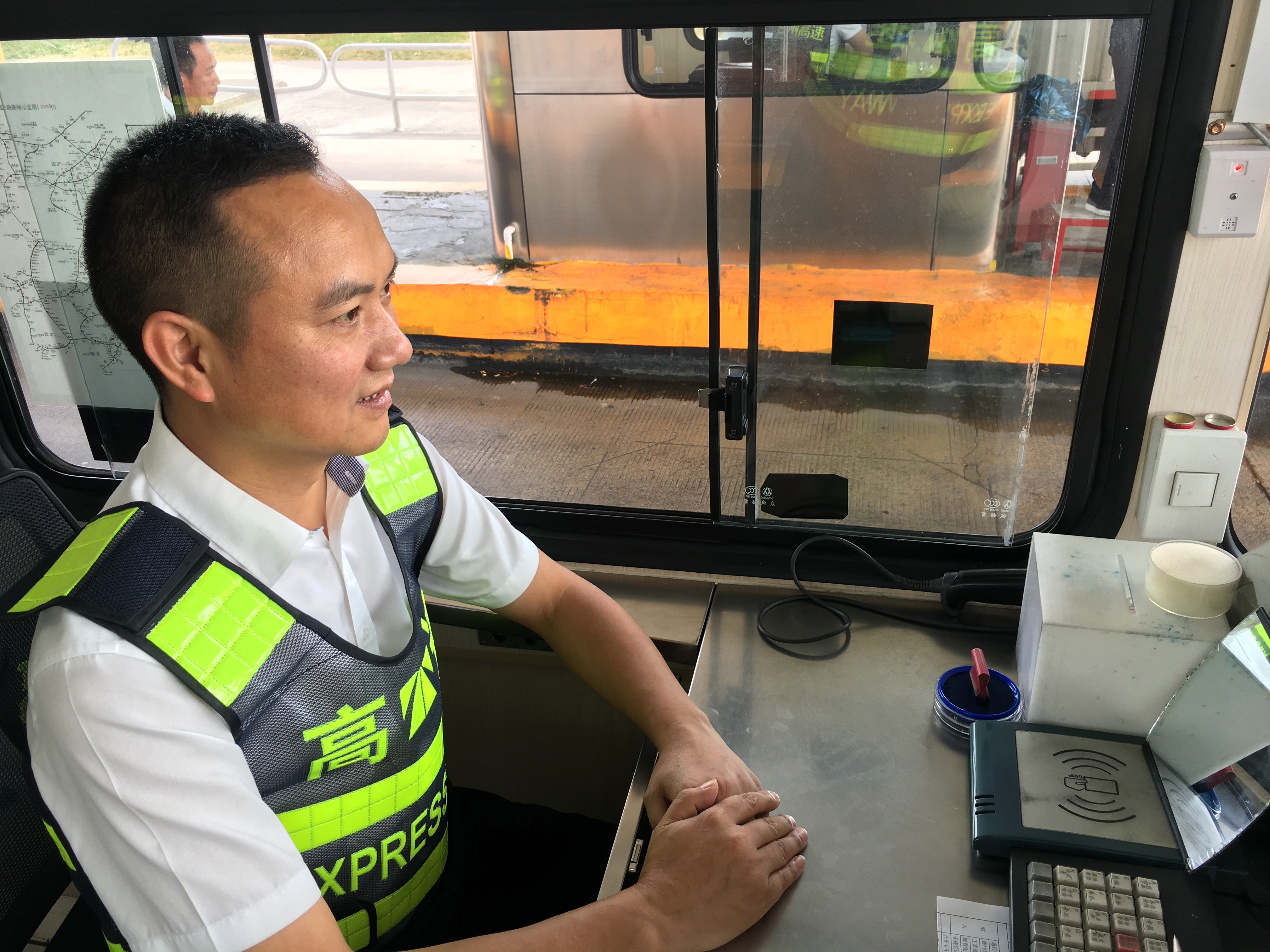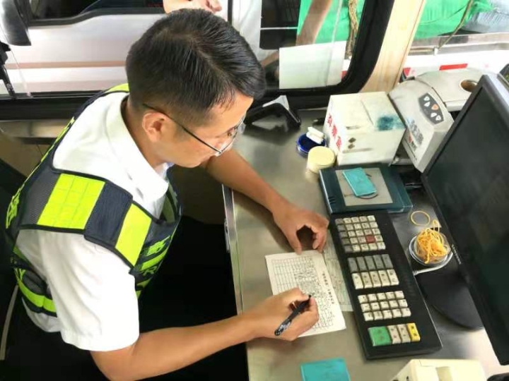 而在對面發(fā)卡的安全總監(jiān)項(xiàng)同富正襟危坐,等待著車子的駛?cè)耄?/span>“記住動作就忘記微笑,笑起來又忘記要說什么......真有點(diǎn)手忙腳亂的,做好收費(fèi)員,不容易?!?/span>