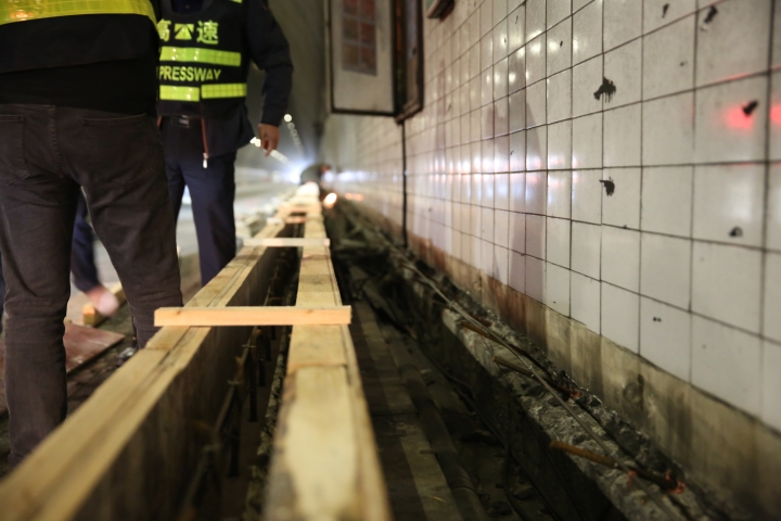 黃土嶺隧道原本設(shè)計(jì)邊溝高度25公分,目前車流量已超飽和狀態(tài),極易發(fā)生事故,一旦事故發(fā)生,車輛容易騎上邊溝,撞擊隧道壁,存在重大安全隱患,現(xiàn)有邊溝設(shè)計(jì)高度已不能很好滿足安全運(yùn)營需要。為了解決這個(gè)問題,此次隧道施工將抬高邊溝至40公分。施工現(xiàn)場,施工人員正在分成多組進(jìn)行邊溝植筋立模。施工現(xiàn)場,多卷巨大的電纜線已經(jīng)進(jìn)場,施工人員正在分成多組進(jìn)行邊溝植筋立模。