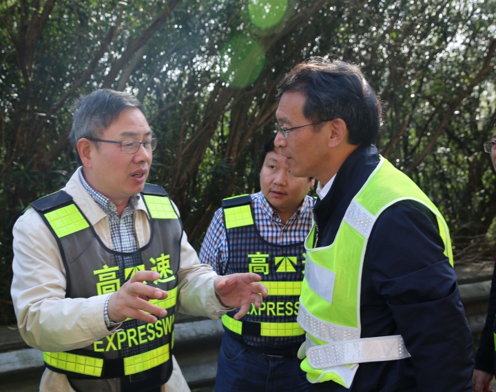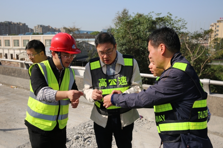 10月31日上午,臺州高速集團(tuán)董事長陳文波在總工程師江輝的陪同下,趕赴甬臺溫高速公路溫州方向黃土嶺隧道、橋梁維修加固工程施工現(xiàn)場,檢查施工進(jìn)展情況。