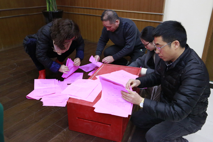 圖為投票現場 會議宣讀了選舉辦法,以鼓掌形式通過了選舉辦法。以舉手方式推薦產生監票人、計票人。經差額選舉,公司黨委書記謝文君當選,將代公司出席市五屆一次黨代會。 李佩紅