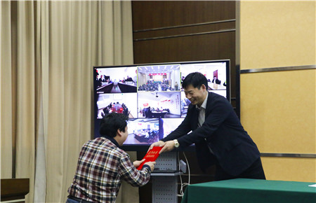圖為集團副總經(jīng)理陳保衛(wèi)為“2017年全市交通建設(shè)先進(jìn)個人”何翔頒獎