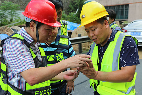 8月20日,已經是三伏天的尾聲了,雖然經過連續多個臺風的洗禮,然而天氣依然炎熱。集團總工程師江輝心系一線,在工程部負責人的陪同下,深入大溪嶺-湖霧嶺隧道機電改造項目工地現場,慰問正在高溫中奮戰的一線施工人員。