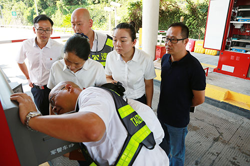 圖為工作人員在裝免費(fèi)票 當(dāng)天天氣雖然異常悶熱,但現(xiàn)場管理員、技術(shù)員、收費(fèi)員悉數(shù)到場,確保機(jī)器有效運(yùn)轉(zhuǎn)。集團(tuán)副總經(jīng)理章海峰依次奔赴各所檢查指導(dǎo)機(jī)器運(yùn)行情況。在途中,他一一電話詢問“準(zhǔn)備工作如何了,卡票是否裝好”等事宜,在現(xiàn)場,當(dāng)有司機(jī)停靠位置不到位,夠不到通行卡時(shí),章海峰立即取卡、遞卡。他對在場人員強(qiáng)調(diào),要多多學(xué)習(xí),在實(shí)踐中學(xué)懂弄通,盡快熟練掌握發(fā)卡機(jī)的運(yùn)作原理和操作流程,服務(wù)好過往的司乘人員。各所要合理調(diào)配一線員工,做到正常時(shí)段管理順暢,應(yīng)急時(shí)段能夠及時(shí)反應(yīng),有效管好入口車道。