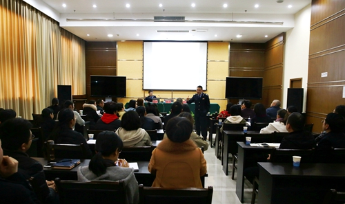 圖為臺州經(jīng)濟(jì)開發(fā)區(qū)稅務(wù)局局長柳東海在課上講話