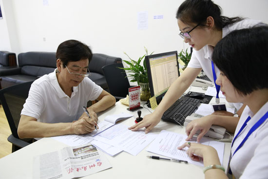 據椒江收購點工作人員朱海燕介紹,集團高齡股東較多,如果他們前來辦理,工作人員會及時上前攙扶股東到審核區坐下,核對股東是否確權,審核身份證、銀行卡等資料,如果一切無誤便直接帶領股東到辦理區。