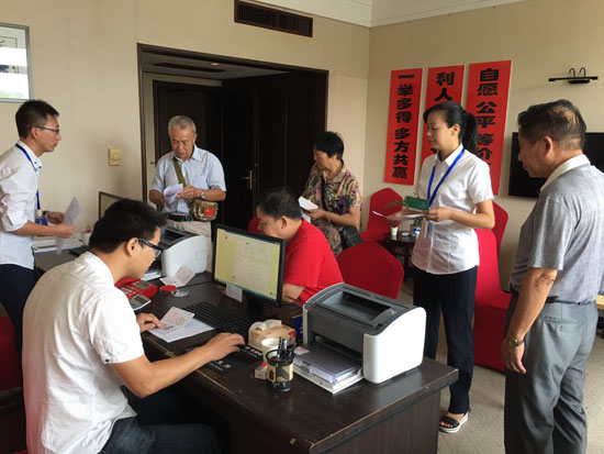 “大爺!你好!您請坐!”收購點的工作人員忙著接待各位股東,集團總經理張建平來到股權椒江收購點親自為股東服務,為股東遞上各種股權轉讓資料。集團其他領導班子分別赴各個收購點檢查指導,確保啟動日順利開展收購工作。