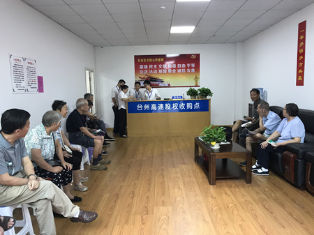 各收購點(diǎn)從一開始接收的第一筆股份轉(zhuǎn)讓,到現(xiàn)在大大小小股份協(xié)議書的簽訂,形形色色的股東都表示很支持和理解臺(tái)州高速股權(quán)收購工作,相繼前來轉(zhuǎn)讓股份。有的股東在轉(zhuǎn)了自己的股權(quán)后又立馬發(fā)動(dòng)親戚好友前來辦理轉(zhuǎn)讓;有的近90歲高齡了還親自到收購點(diǎn),耐心聽工作人員講解細(xì)節(jié)內(nèi)容;有的稱多出的十多倍收益為意外之喜;有的甚至悔恨當(dāng)年為何不多將資金投到臺(tái)州高速……可愛可敬的臺(tái)州高速股東們!