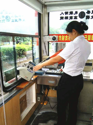 圖為工作人員正在清理驗鈔機灰塵 由于該收費站平時車流量大,收費金額比較多,使得驗鈔機長時間運轉(zhuǎn),積累了很多灰塵,在一定程度上影響了工作效率。當(dāng)天上午的所務(wù)會議便反映過此類問題,負(fù)責(zé)該項工作的狄文琦會后立馬帶上工具,輪流清理每個崗?fù)さ尿炩n機和打印機,將灰塵從桌面到驗鈔機里全面清除干凈。副班長張竟君從旁協(xié)助,用抹布掃尾,配合相當(dāng)默契,瞬間桌面提亮不少,驗鈔機工作效率也提高很多。 此次行動表明,女同志也可以很好地管理設(shè)備,保證工作正常運行。 陳豐平