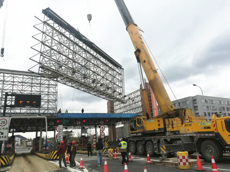 圖為臺(tái)州收費(fèi)站拆廣告現(xiàn)場