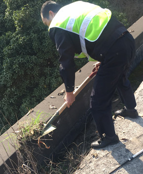 圖為清理后的屋頂排水溝 大溪嶺隧道管理所依山而建,落葉、塵土、沙石堆積極容易造成排水溝的堵塞,如汛期來臨,排水溝堵塞造成的隱患無窮。 所執勤隊根據安排,排查配電房、管理房等汛期容易受災害影響的隱患,遵循“發現一處整治一處,整治一處銷號一處”的原則,對配電房、管理房的屋頂排水這一安全隱患和薄弱環節進行清理,以實際行動落實整改和消除隱患,確保2018年安全度汛。 陳智慧