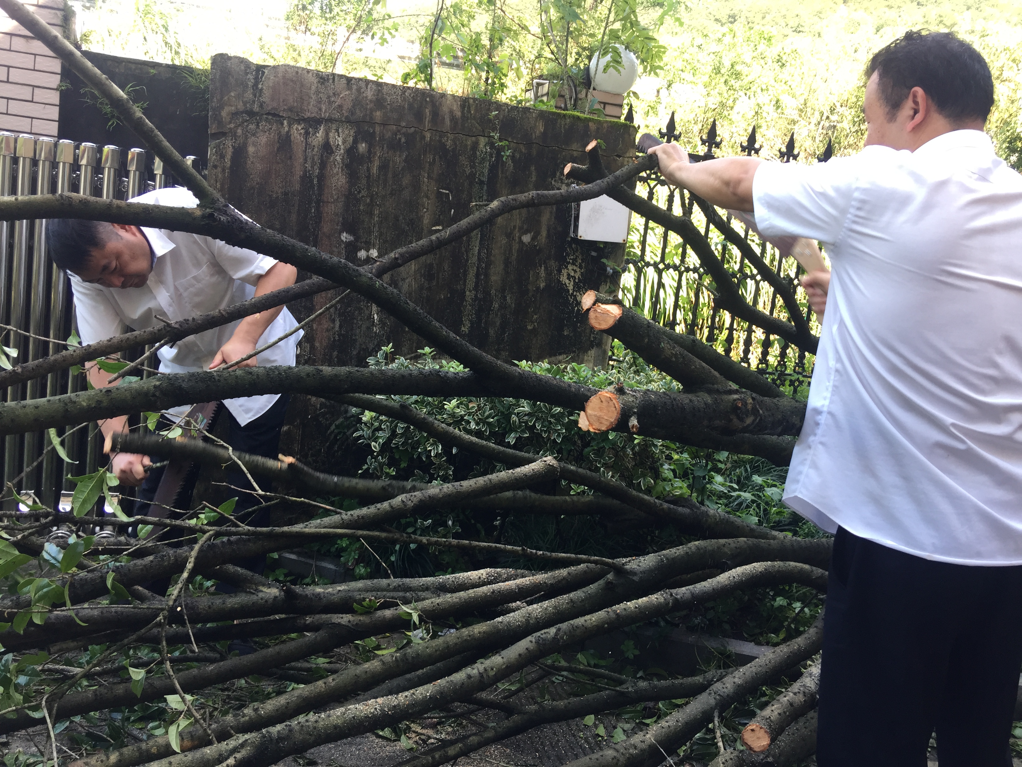 圖為臺風過后隧道所人員給倒伏的樹木截枝
