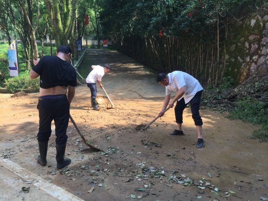 圖為臺風過后隧道所人員檢查南廣場高桿燈 臺風“利奇馬”肆虐而過,雖然黃土嶺隧道所提前做好各項防臺措施,但是干凈整潔的管理所在這場天災中還是遭受到了破壞,樹木倒折、落葉、樹枝滿地,淤泥坑洼,現場一片狼藉。8月12日上午剛剛恢復正常供水的黃土嶺隧道所,全體人員立馬投入到重建家園中,打掃衛生,原地種回倒伏的樹木,清理淤泥……徹底消除臺風過后留下的殘敗痕跡。 正是這些忙碌的身影演繹出許多冒雨執勤的感人鏡頭,呈現愛護家園的溫暖畫面,他們更用實際行動踐行著“您的安全,我們守護”的諾言,盡職盡責,用出色的工作表現體現自身的價值,為高速車輛的出行安全貢獻自己的力量。 林 玲