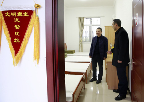 圖為公司總經理張建平在員工宿舍查看