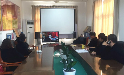 圖為公司領導班子成員、大樓本部黨員在觀看直播