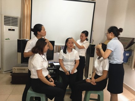 課堂中,一位老師為大家講解了“什么是頸椎病”、“頸椎的重要性”、“頸椎病的危害”等有關健康知識,另一位老師邀請現場人員做示范,用專業(yè)手法演示如何緩解頸椎亞健康狀態(tài)。 在老師的理論講解和親手示范下,在場人員分成兩組,現學現練,一組人用所學手法演示操作,另一組人坐著感受,老師在旁一一指點不足之處,然后兩組人員互換,交替學習。 此次健康講座不僅僅是紙上談兵,更讓每位員工親自練習操作手法,為今后在做好文明服務收費工作中,如何減緩頸椎疲勞提供了方法。 徐蘇蘇