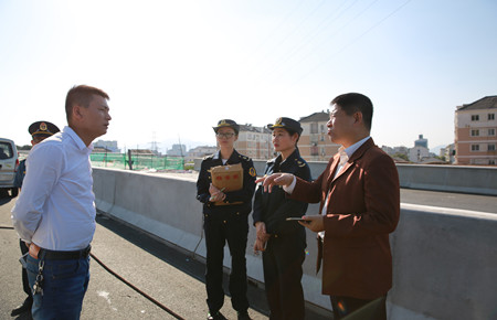 10月27日,黃巖區公路局到內環路(黃巖段)開展涉路施工監管。市政公司相關負責人陪同檢查。